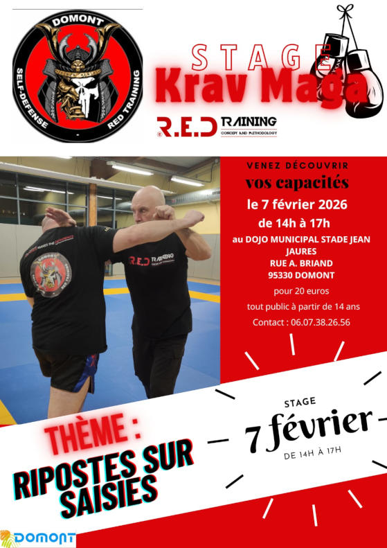 stage Krav Maga RED training samedi 7/2 de 14 à 17h au dojo du stade Jean Jaurès